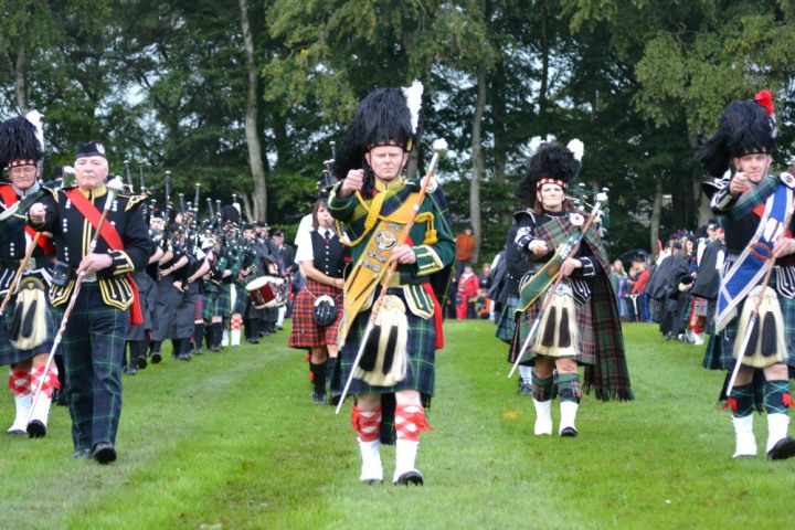 The current Huntly Pipe Band has two uniforms; a number one ceremonial dress used for special occasions and certain Highland Games that require the full ceremonial dress to be worn by our members.